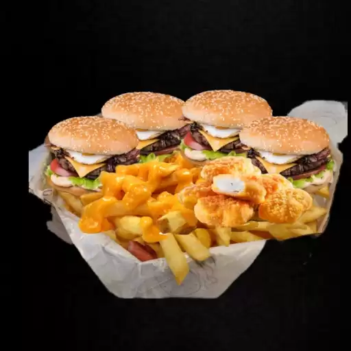 4 - ( x tudo ) chef burguer, batata, Nuggets, molho verde e cheddar.