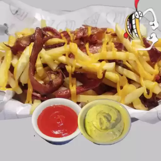 Não tem igual ! Batata com bacon, linguiça calabresa, cheddar (ketchup e maionese do chef em pote 30ml) Em uma porç... Ver completo