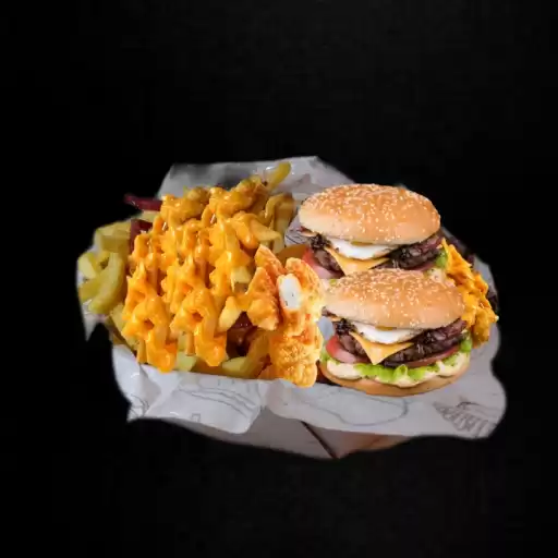 2- ( x tudo ) promocional , Batata, Nuggets, molho verde e cheddar.