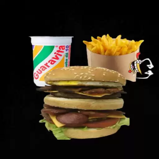 3 pães, 2 carnes, 2 queijos, 2 presuntos, 2 ovos, bacon crocante, calabresa, alface fresquinho e cebola caramelizada,... Ver completo