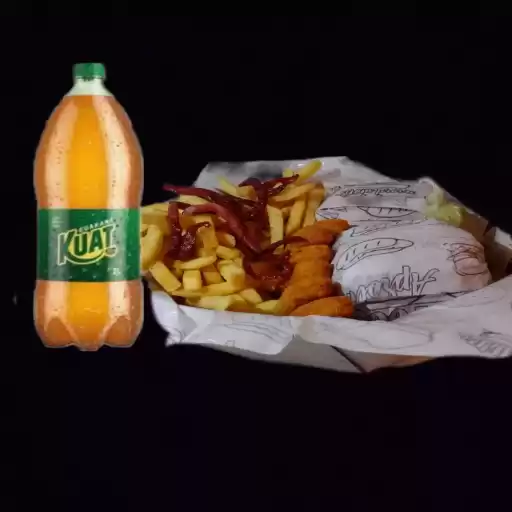 2 X-calabresa, batata e nugget, 2 litros sabores